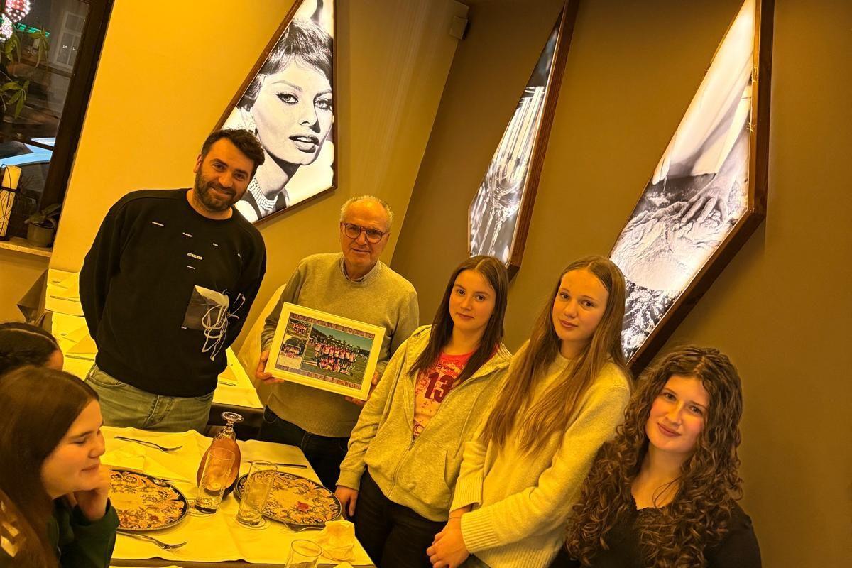 Abgerundet wurde der perfekte Derbyabend mit einem gemeinsamen Besuch in der Pizzeria Rosino in Bad Sobernheim. Dort bedankten sich die Mädels persönlich mit einem gerahmten Mannschaftsfoto bei Chef Rosino für die von ihm gesponserten Trikots. Vielen Dank! Und ja – die Pizza war wie immer richtig lecker!