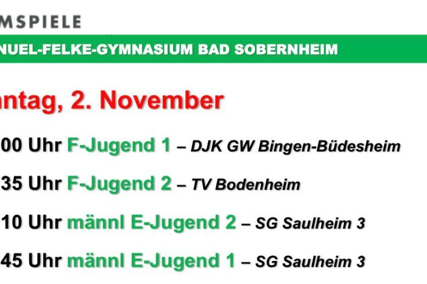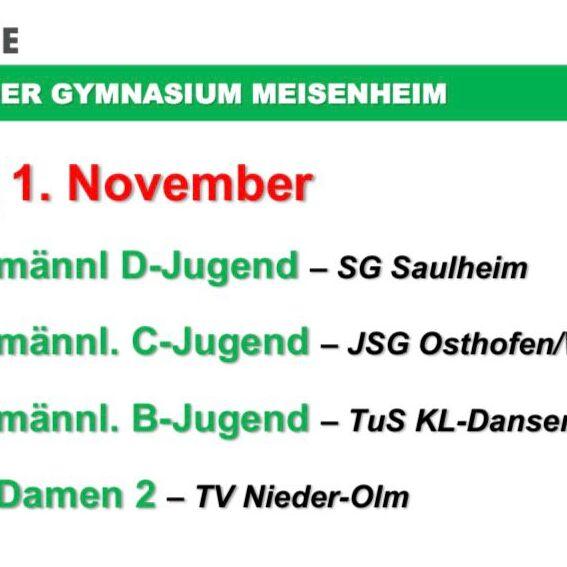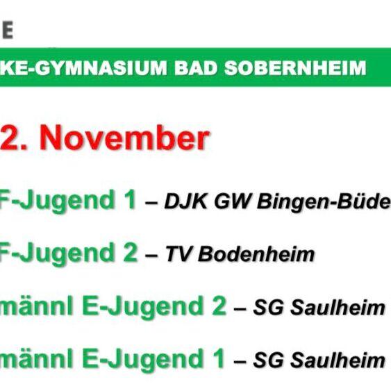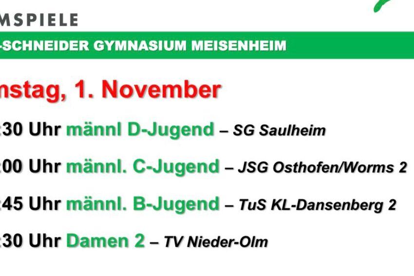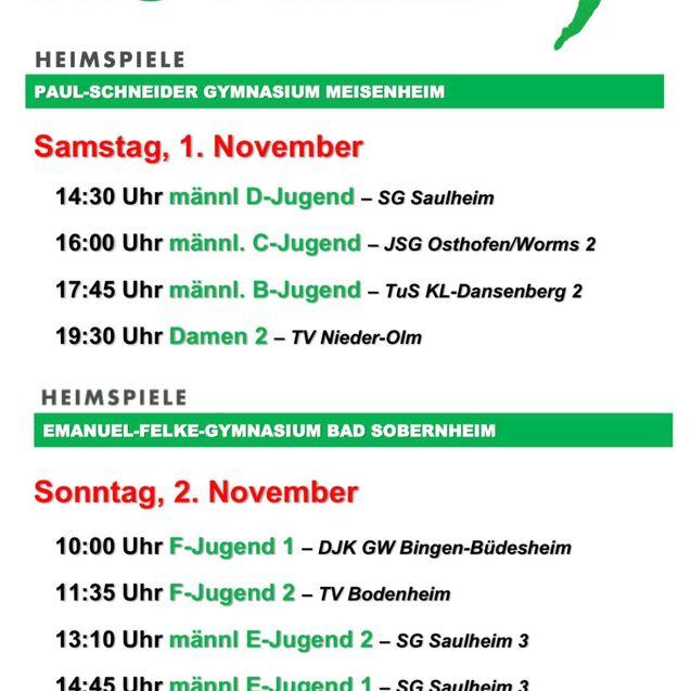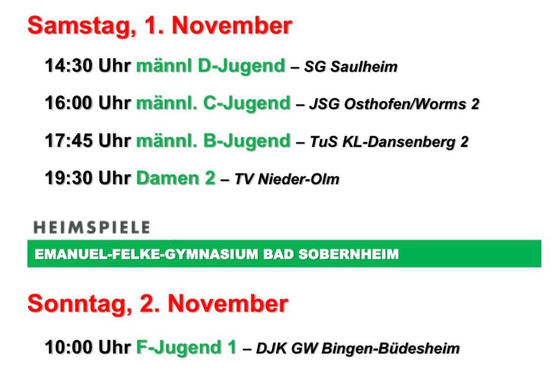 An diesem Wochenende steht wieder ein volles Programm für unsere Teams an – doch Achtung: Aufgrund von Sanierungsarbeiten in der Dr.-Werner-Dümmler-Halle finden alle Heimspiele am Samstag im Paul-Schneider-Gymnasium in Meisenheim und alle Heimspiele am Sonntag im Emanuel-Felke-Gymnasium in Bad Sobernheim statt!