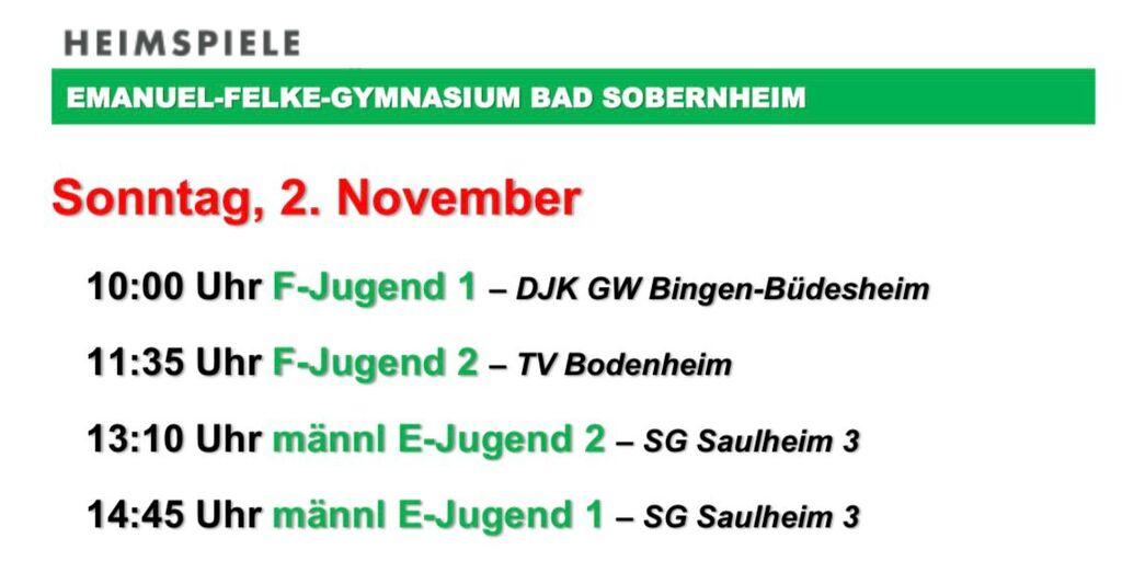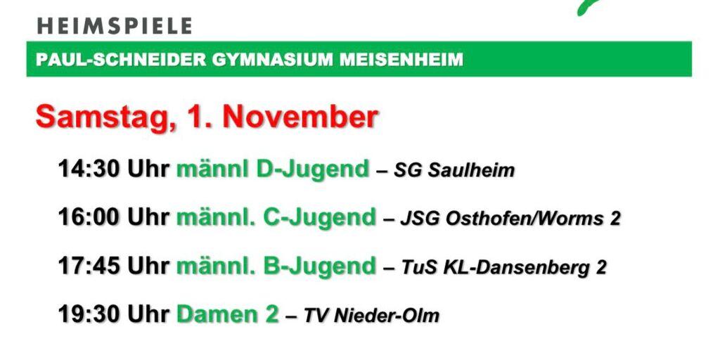 An diesem Wochenende steht wieder ein volles Programm für unsere Teams an – doch Achtung: Aufgrund von Sanierungsarbeiten in der Dr.-Werner-Dümmler-Halle finden alle Heimspiele am Samstag im Paul-Schneider-Gymnasium in Meisenheim und alle Heimspiele am Sonntag im Emanuel-Felke-Gymnasium in Bad Sobernheim statt!